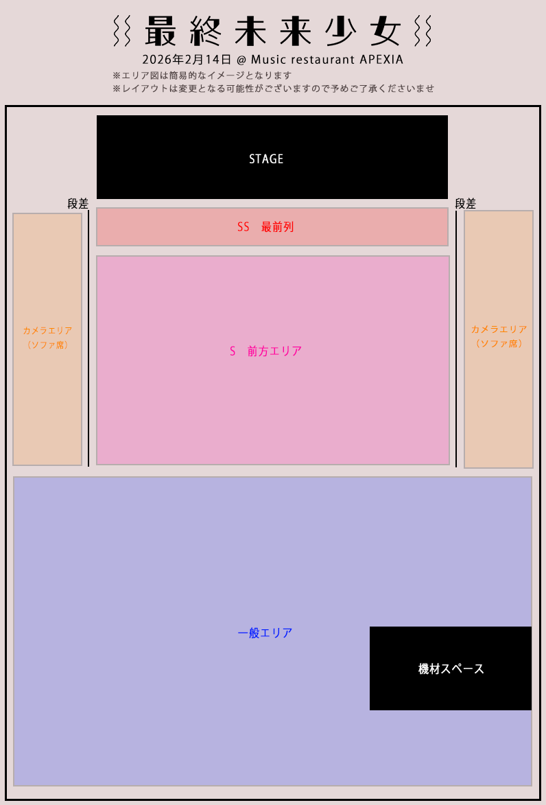 ・オールスタンディング公演(カメラエリア除く)となります。