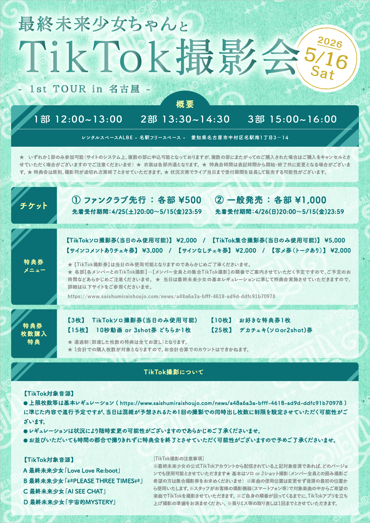 ★ 当日は最終未来少女の基本レギュレーションに準じて特典会実施させていただきますので、詳細は以下サイトをご参照くださいませ。