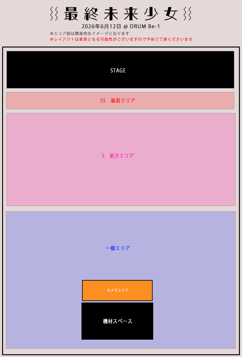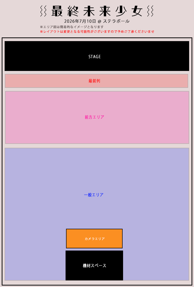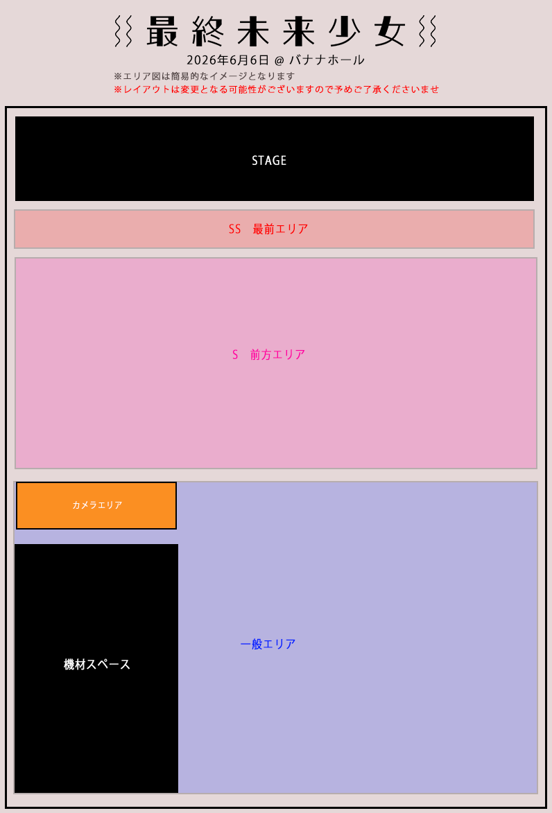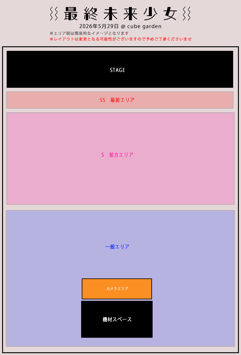 ・ライブ会場敷地内での暴言・器物損壊・脅迫・暴力行為は見つけ次第退場とし、以降の最終未来少女出演公演への入場をお断りいたします。